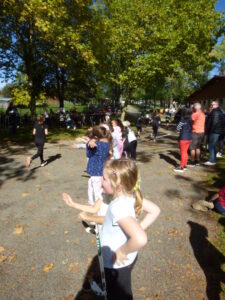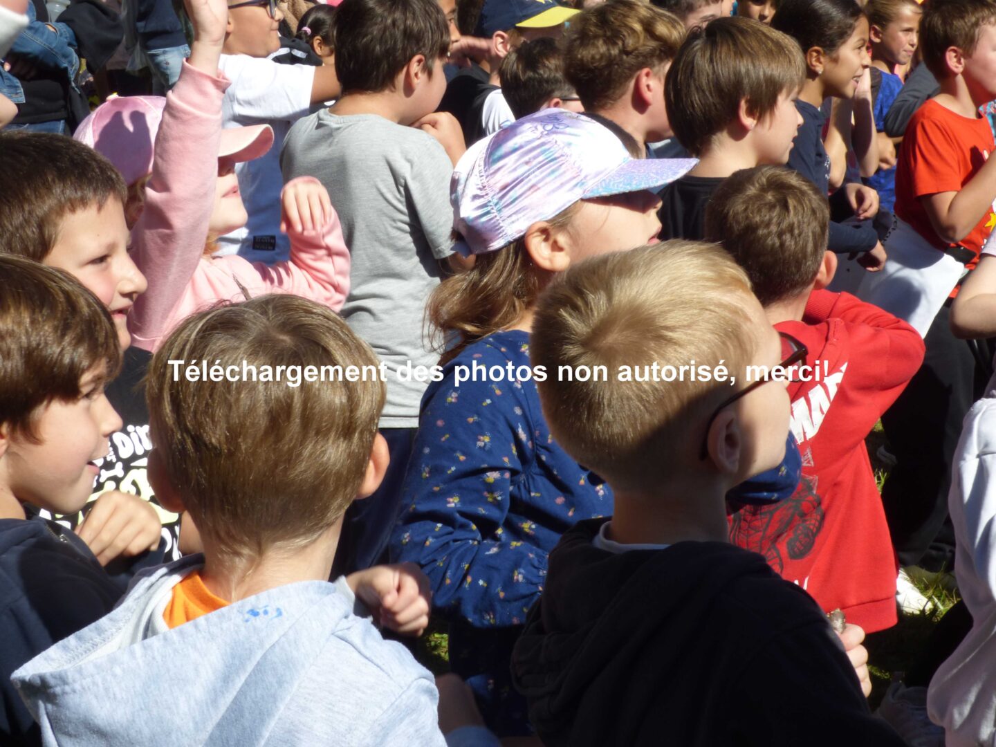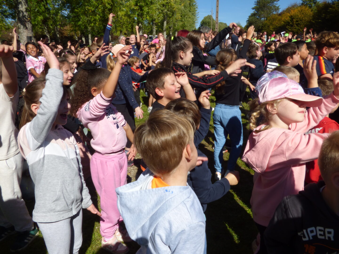 Il y a d’abord eu un échauffement collectif avec une petite chorégraphie dansée, puis plusieurs courses: d’abord le tour des adultes, enseignants ou accompagnateurs, puis la course des GS, la course des CP, la course des CE et la course des CM. Tout s’est bien passé pour les 450 élèves du secteur de Champagnole présents. Un grand merci à tous les parents accompagnateurs qui sont nécessaires à l’organisation et à la réussite de cet événement!