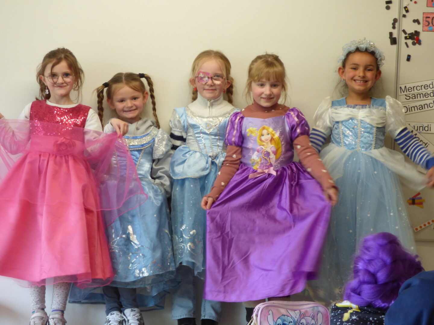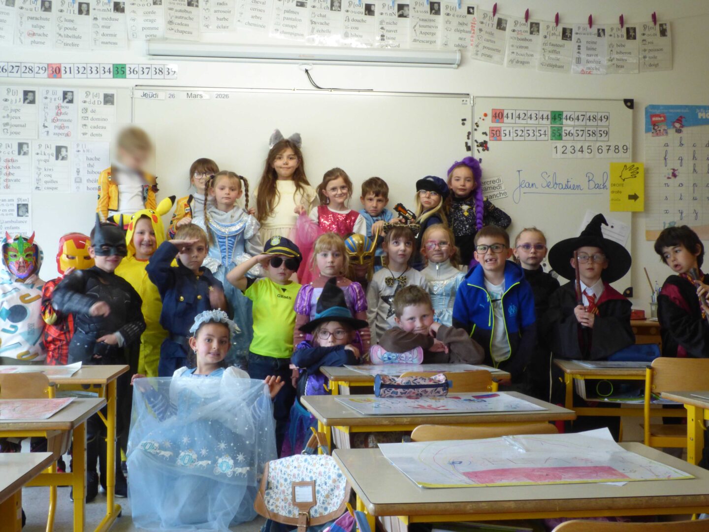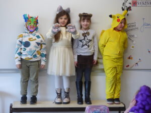 Pour  Carnaval, les enfants et les adultes étaient autorisés à se déguiser sur la journée du 26 mars et beaucoup avaient joué le jeu: tous les adultes étaient déguisés et presque tous les enfants. Malheureusement il a neigé et fait froid toute la journée et on a dû annuler le défilé à l’école maternelle, on a donc défilé dans le couloir autour de la cour intérieure pour admirer les costumes de tout le monde.